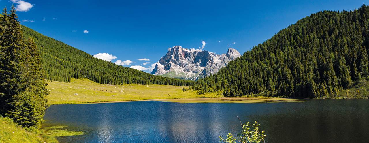 Partenza alle 7.00 in direzione del Lago di Calaita, stupendo specchio d’acqua dove si riflettono incantevoli paesaggi dolomitici.